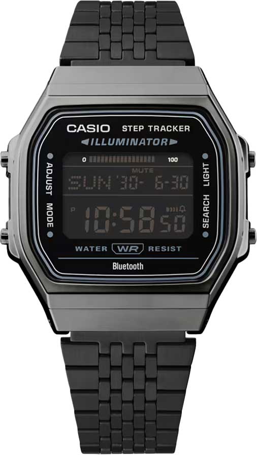 Без сомнения эти часы найдут поклонников среди тех, кто ищет функциональные аксессуары в винтажном стиле. Функциональная новинка в серии Vintage. Унисекс часы. Циферблат подсвечивается ярким светодиодом. Настраиваемое послесвечение 1,5 или 3сек. Цвет подсветки: оранжевый. Второй часовой пояс. 12-ти и 24-х часовой формат времени. Секундомер с двумя точностями показаний: 1/100с (до 1ч) и 1с (после 1ч) и временем измерения 24ч. Память на 200 этапов (дата, время, время круга). SPLIT-хронограф. Таймер обратного отсчета от 1сек до 1ч. Шагомер измеряет количество шагов от 0 до 999999. Установка цели в диапазоне от 1000 до 50000 шагов. Звуковое напоминание об отсутствии активности и достижении цели. Отображение пройденных шагов за последние 7ч на 6-ти уровневом графике. Беспроводная технология Bluetooth® со сверхнизким потреблением энергии для синхронизации со смартфоном. При подключении к смартфону часы корректируют текущее время и упрощают настройку различных функций из приложения, таких как мировое время (до 300 городов), данные о количестве шагов, секундомера и др. Функции отключения/включения звука, поиска телефона, энергосбережения и оповещения о низком заряде батареи. Батарея рассчитана на 2 года. Стальная задняя крышка крепится на 4-х винтах. Стальной браслет с регулируемой застежкой.