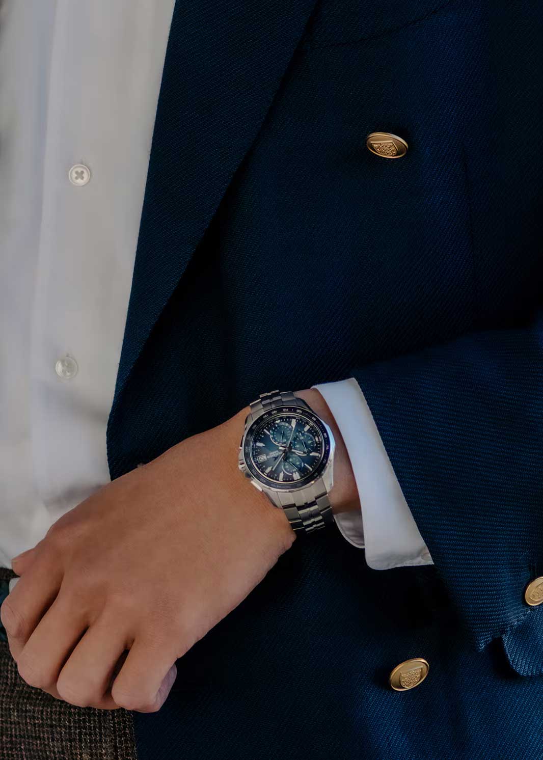 • Беспроводная технология Bluetooth® со сверхнизким потреблением энергии для синхронизации со смартфоном. При подключении к смартфону часы корректируют текущее время и упрощают настройку различных функций из приложения, таких как мировое время (до 300 городов) и др.