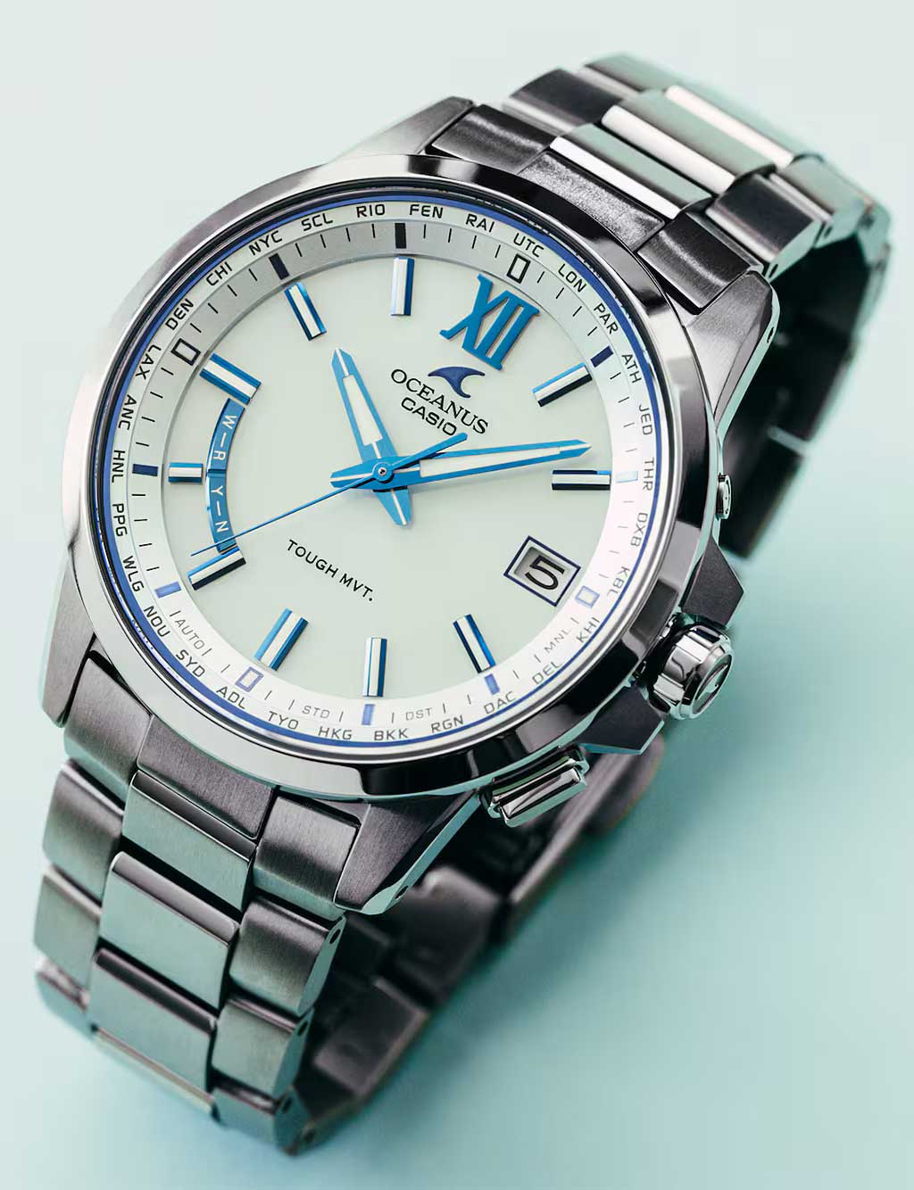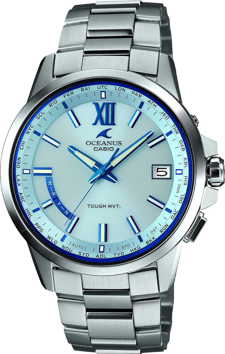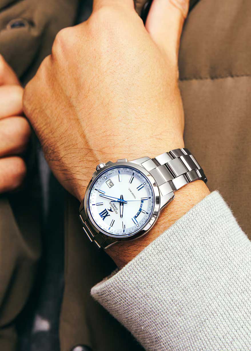 Мужские часы серии Oceanus собираются только в Японии. Круглый титановый корпус с полировкой Zaratsu. Питание от солнечной энергии Tough Solar - солнечные батарейки большой мощности, оповещения о низком заряде батареи. Функция автоматического сохранения энергии. Время работы аккумулятора без подзарядки приблизительно 7 месяцев, при включенной функции сохранения энергии приблизительно 29 месяцев.