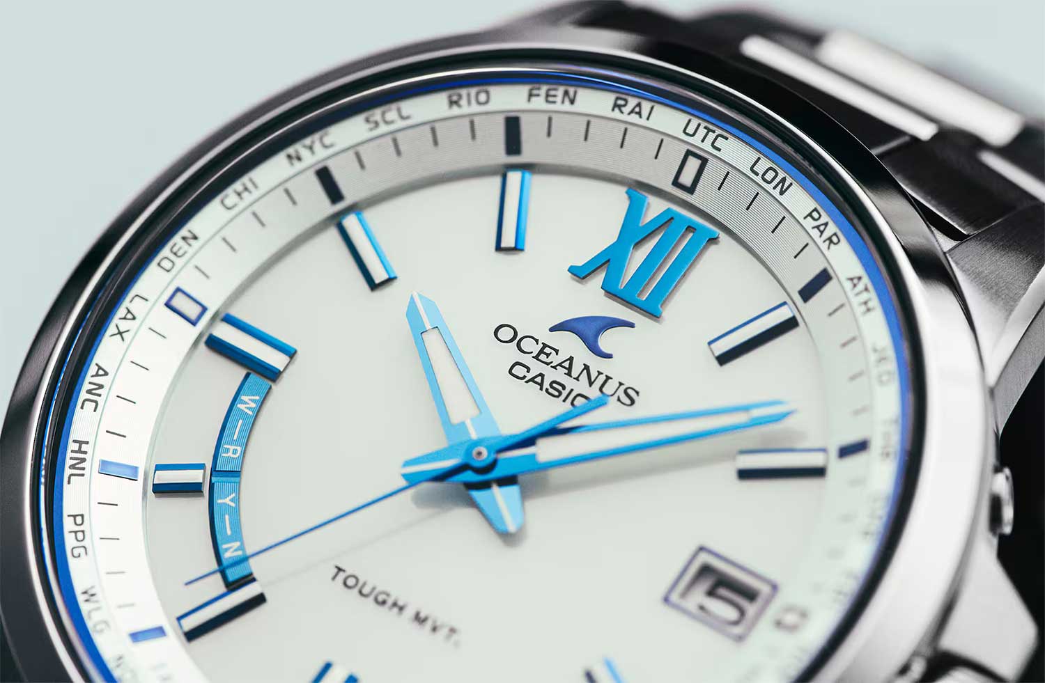 • Технология Multi Band 6 позволяет принимать сигналы от шести радиовышек, расположенных в различных точках земного шара, которые передают временные сигналы от определенных атомных часов. Коррекция текущего времени радиосигналом на территории почти всей Европы, США, Японии и Китая.