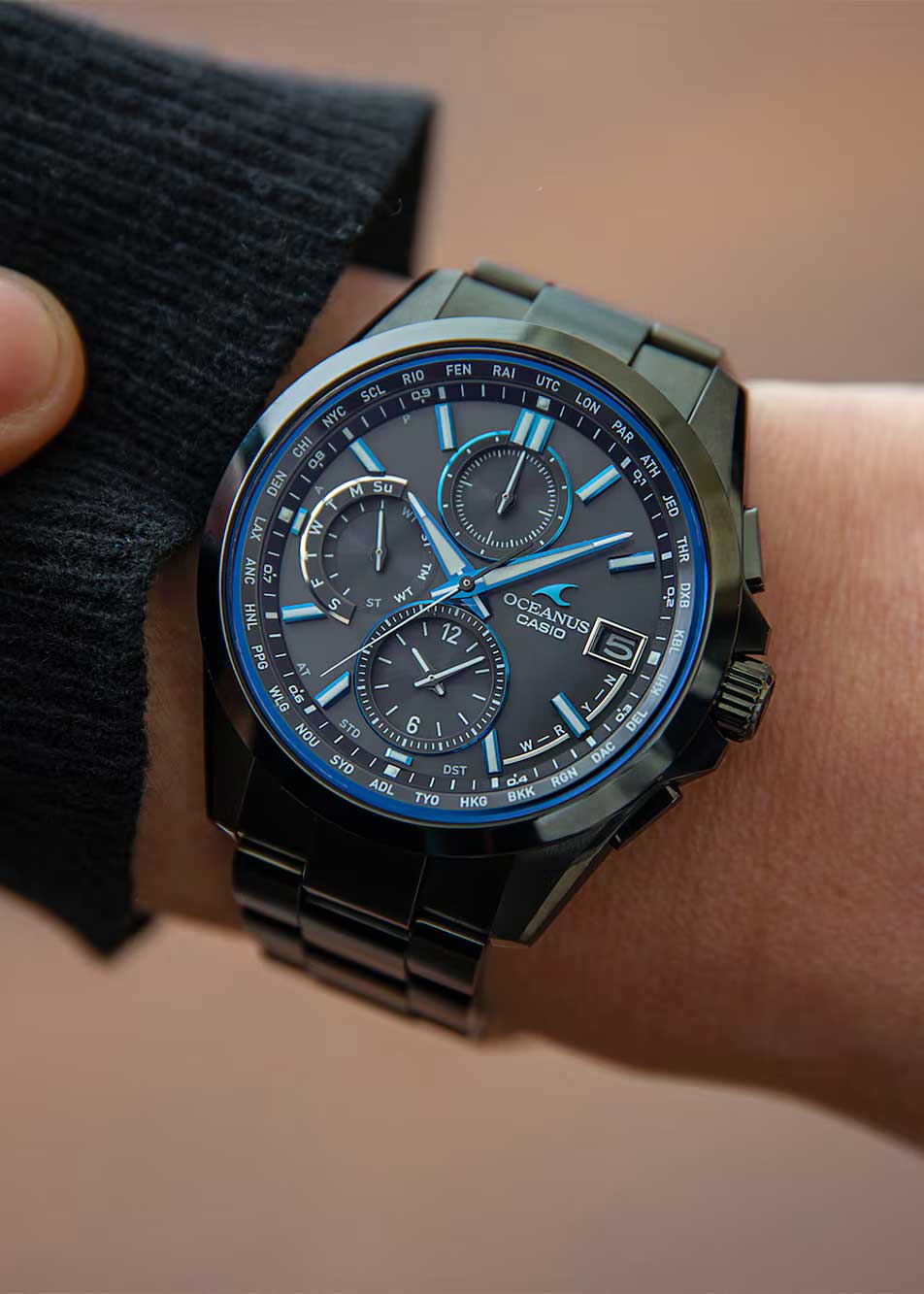 Мужские часы серии Oceanus собираются только в Японии. Круглый титановый корпус с полировкой Zaratsu. Питание от солнечной энергии Tough Solar - солнечные батарейки большой мощности, оповещения о низком заряде батареи. Функция автоматического сохранения энергии. Время работы аккумулятора без подзарядки приблизительно 5 месяцев, при включенной функции сохранения энергии приблизительно 22 месяца.