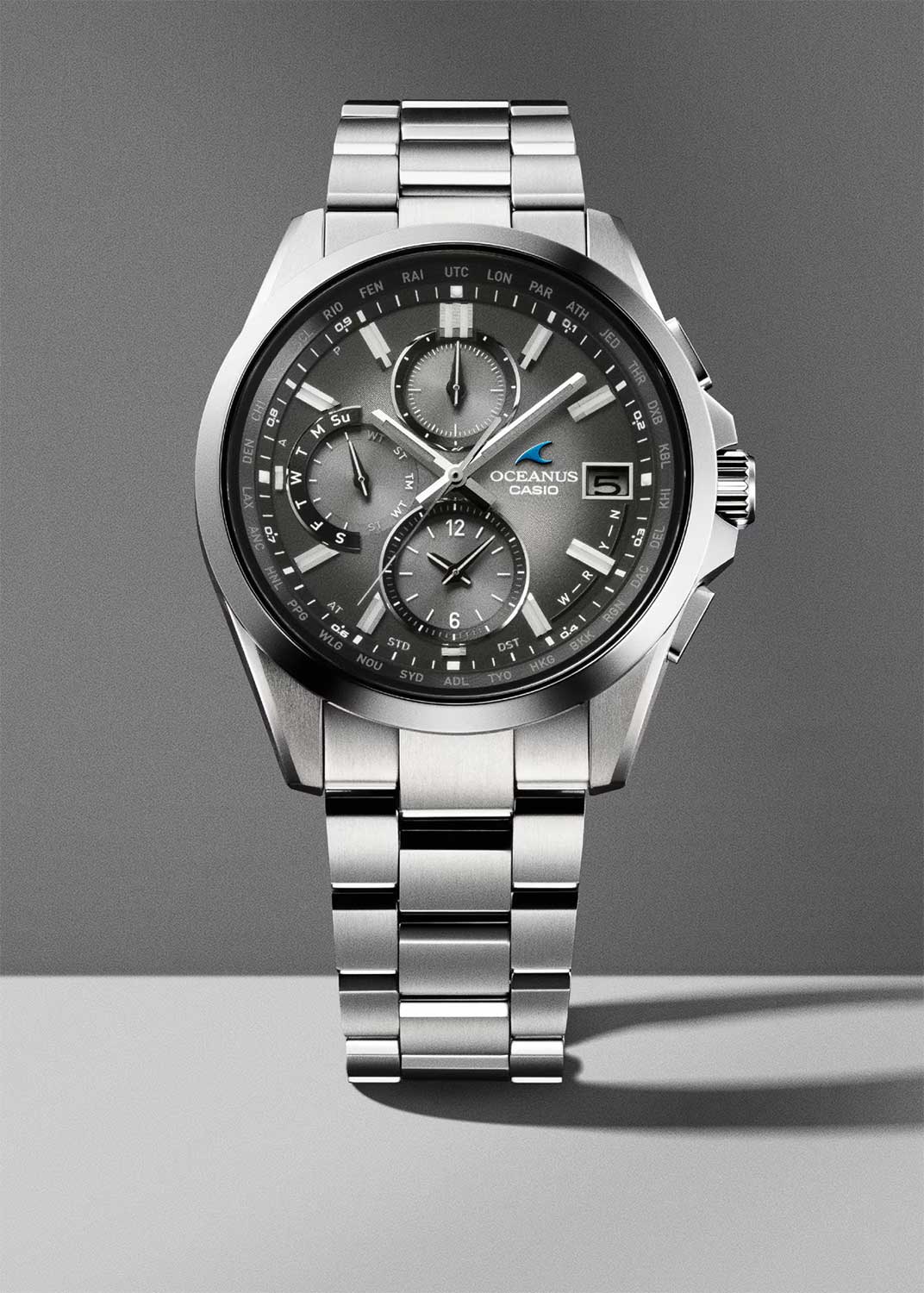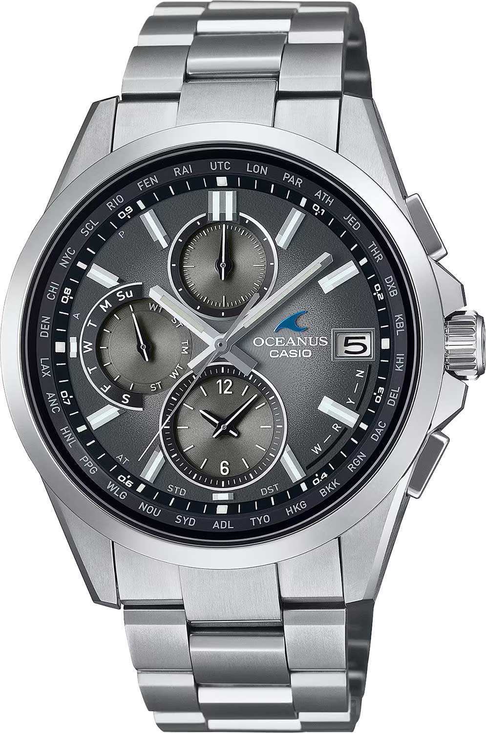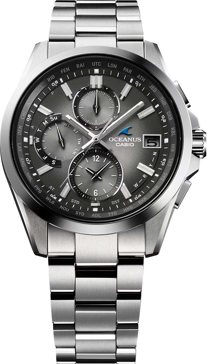 Мужские часы серии Oceanus собираются только в Японии. Круглый титановый корпус с полировкой Zaratsu. Питание от солнечной энергии Tough Solar - солнечные батарейки большой мощности, оповещения о низком заряде батареи. Функция автоматического сохранения энергии. Время работы аккумулятора без подзарядки приблизительно 5 месяцев, при включенной функции сохранения энергии приблизительно 22 месяца.