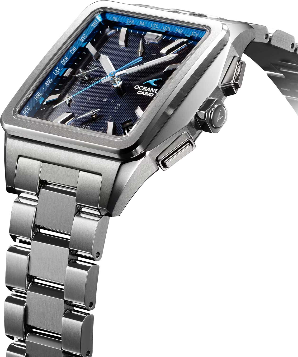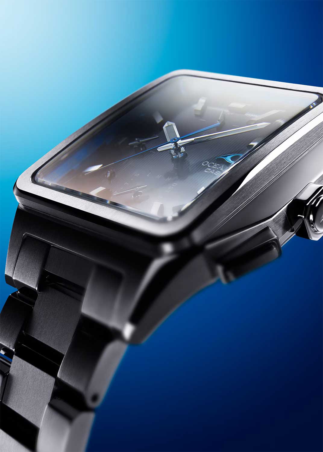 Мужские часы серии Oceanus собираются только в Японии. Квадратный титановый корпус с полировкой Zaratsu. Питание от солнечной энергии Tough Solar - солнечные батарейки большой мощности, индикатор заряда батареи. Функция автоматического сохранения энергии. Время работы аккумулятора без подзарядки приблизительно 5 месяцев, при включенной функции сохранения энергии приблизительно 18 месяцев.