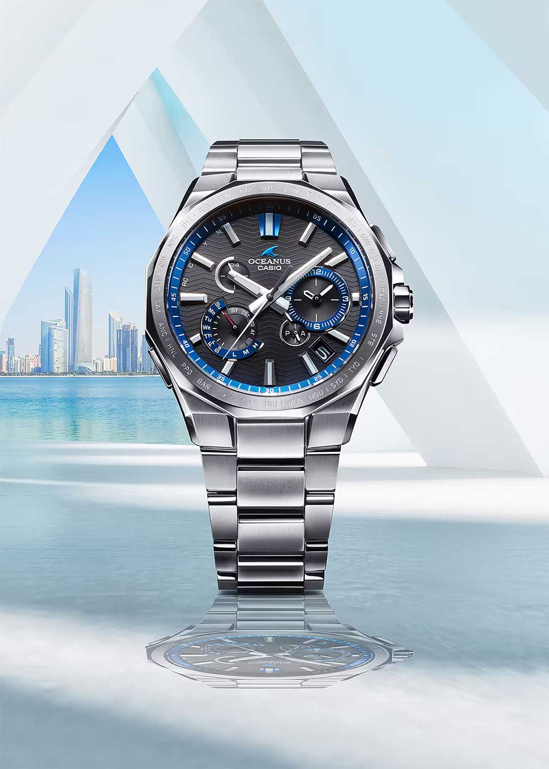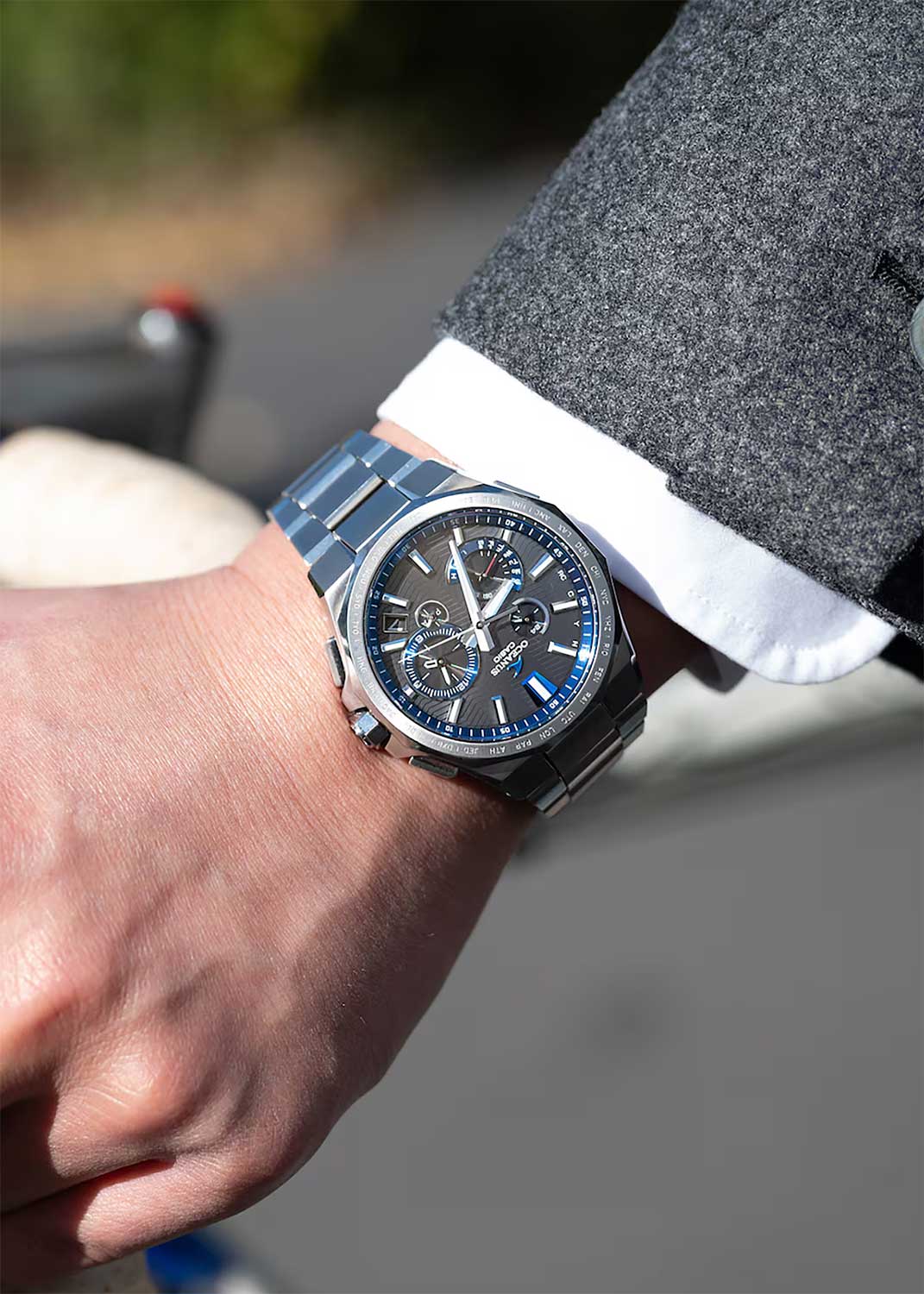 Мужские часы серии Oceanus собираются только в Японии. Круглый титановый корпус с полировкой Zaratsu. Питание от солнечной энергии Tough Solar - солнечные батарейки большой мощности, индикатор заряда батареи. Функция автоматического сохранения энергии. Время работы аккумулятора без подзарядки приблизительно 5 месяцев, при включенной функции сохранения энергии приблизительно 18 месяцев.