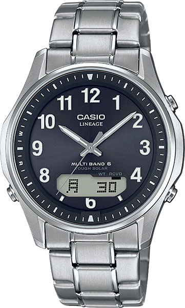 Встроенная радиокоррекция времени гарантирует точное время. Часы для пунктуальных мужчин. Lineage. Питание от солнечной энергии, индикатор заряда батареи. Циферблат подсвечивается светодиодом. Светонакопительное покрытие необрит продолжает светиться в темноте даже после непродолжительного пребывания на свету. Технология Multi Band 6 позволяет принимать сигналы от шести радиовышек, расположенных в различных точках земного шара, которые передают временные сигналы от определенных атомных часов. Коррекция текущего времени радиосигналом на территории почти всей Европы, США, Японии и Китая. Автоматический переход на зимнее и летнее время. Секундомер с точностью показаний 1/100с и временем измерения 1ч. Таймер обратного отсчета от 1мин до 100мин. Мировое время. 12-ти и 24-х часовой формат времени. Выбор языка отображения дня недели и месяца. Функция включения/отключения звука. Раскладывающаяся застежка, расстегиваемая одним касанием.