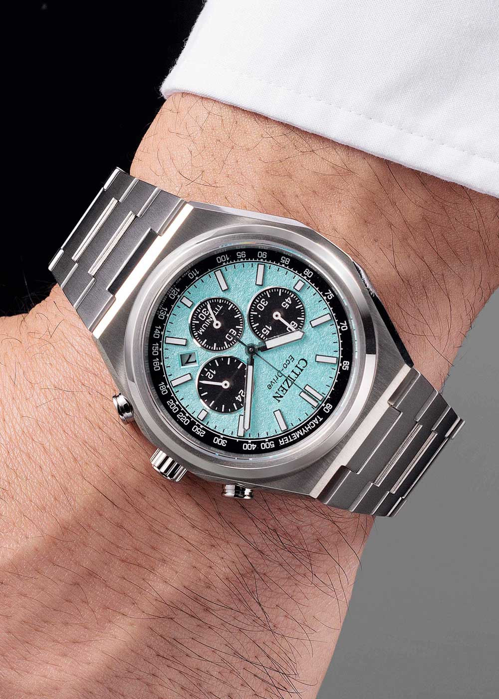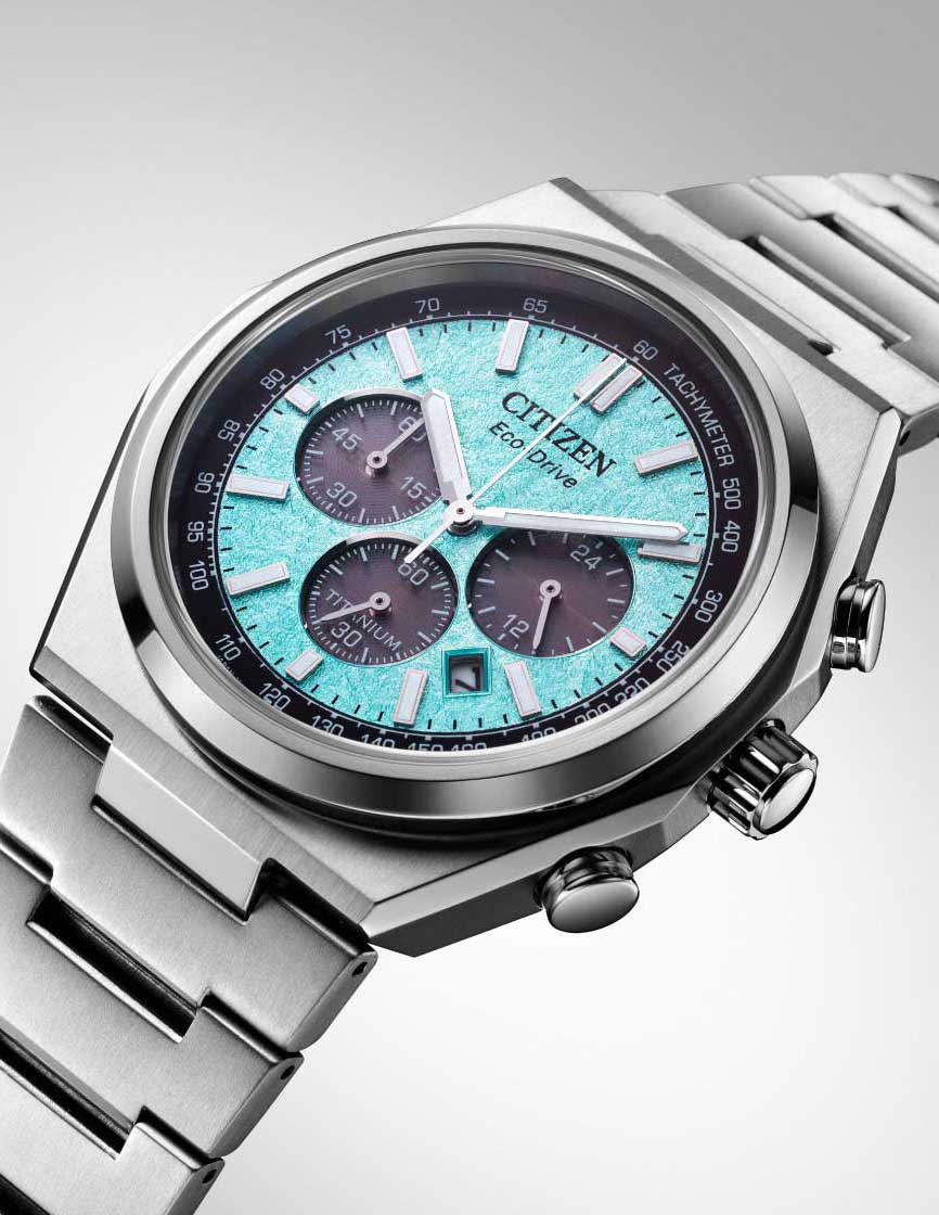Название коллекции Zenshin, означающее «прогресс», символизирует инновационный прорыв Citizen, которая представила в 1970 году первые в мире часы из титана.