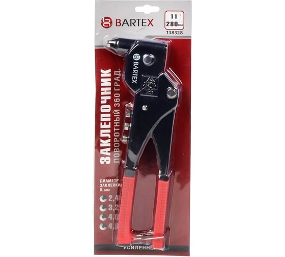 Заклепочник BARTEX 280 мм, 2.4-3.2-4-4.8 мм, усиленный, поворотный, 360, D0721А/HR3000 138328